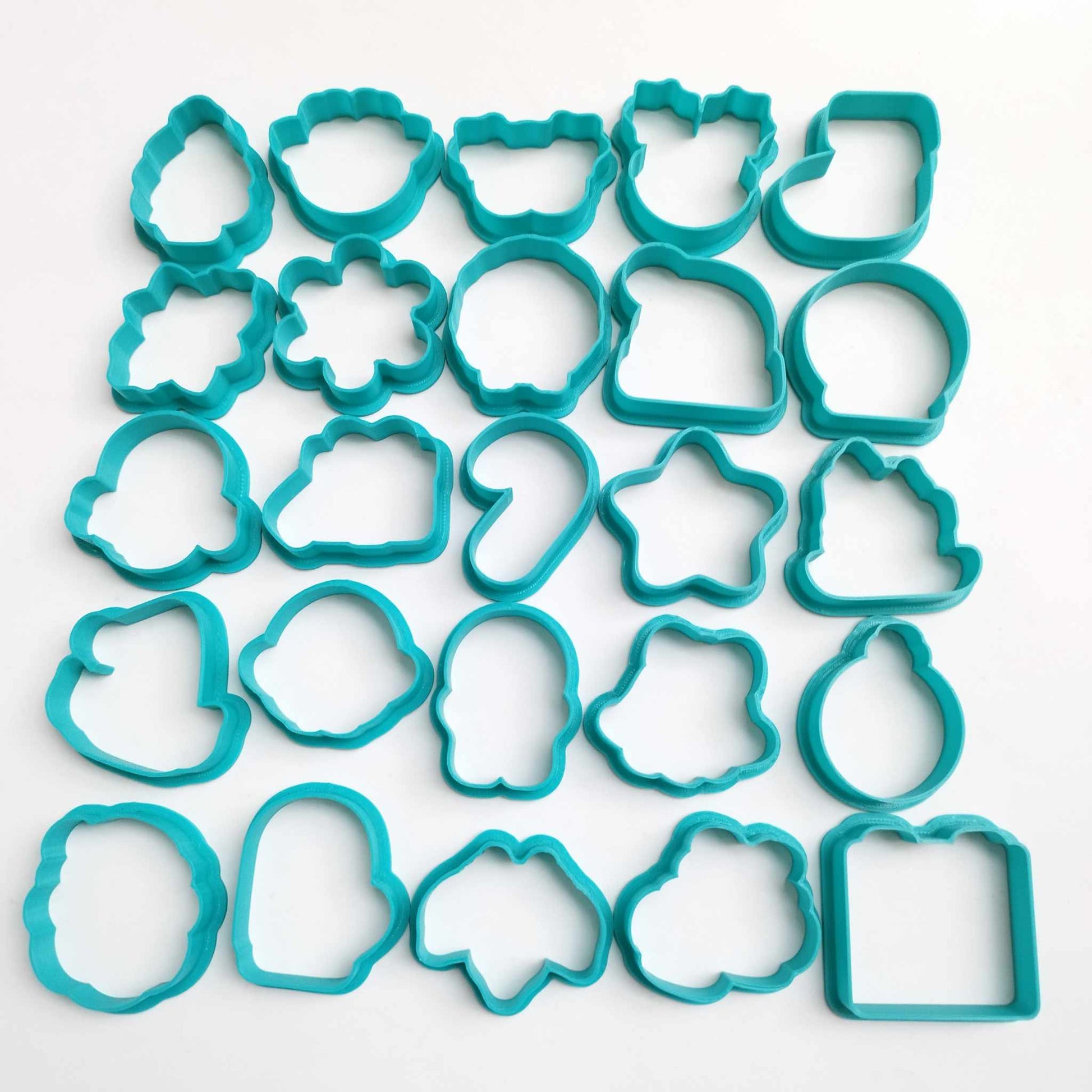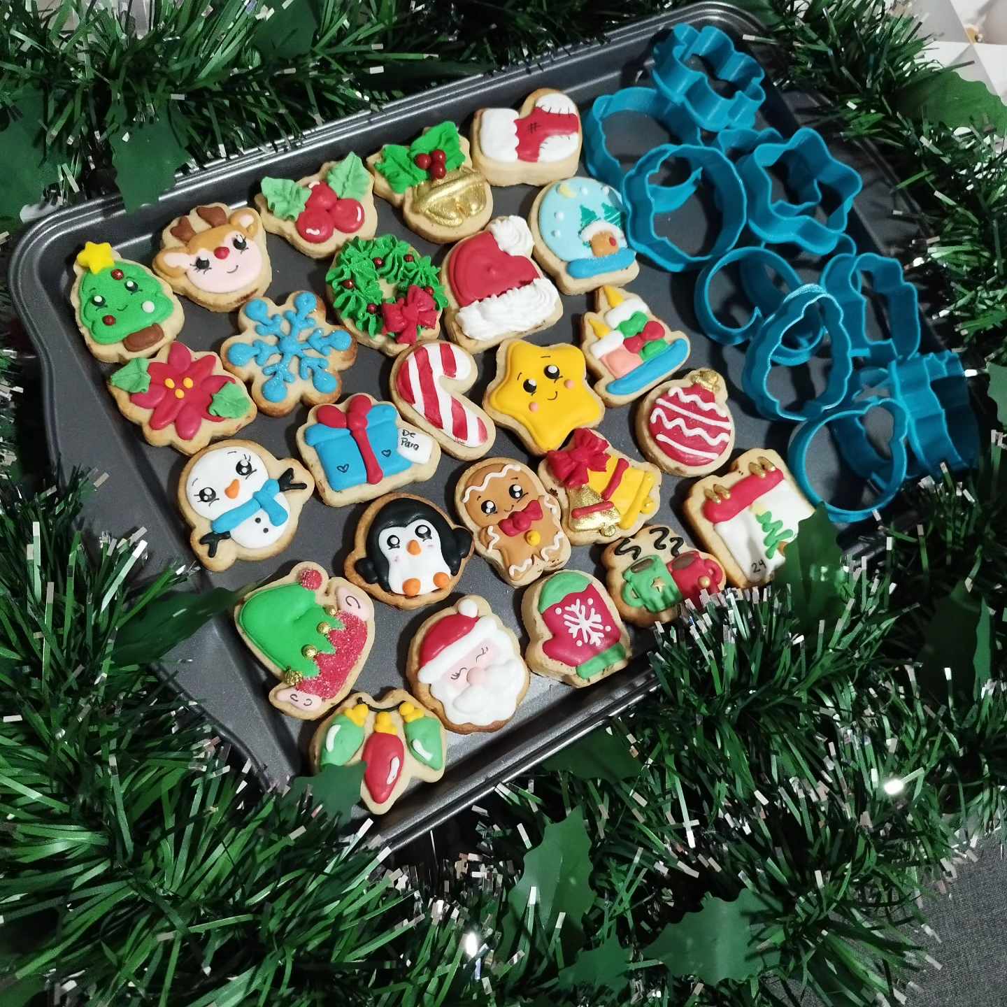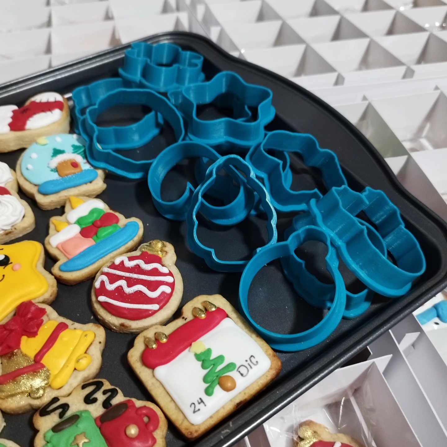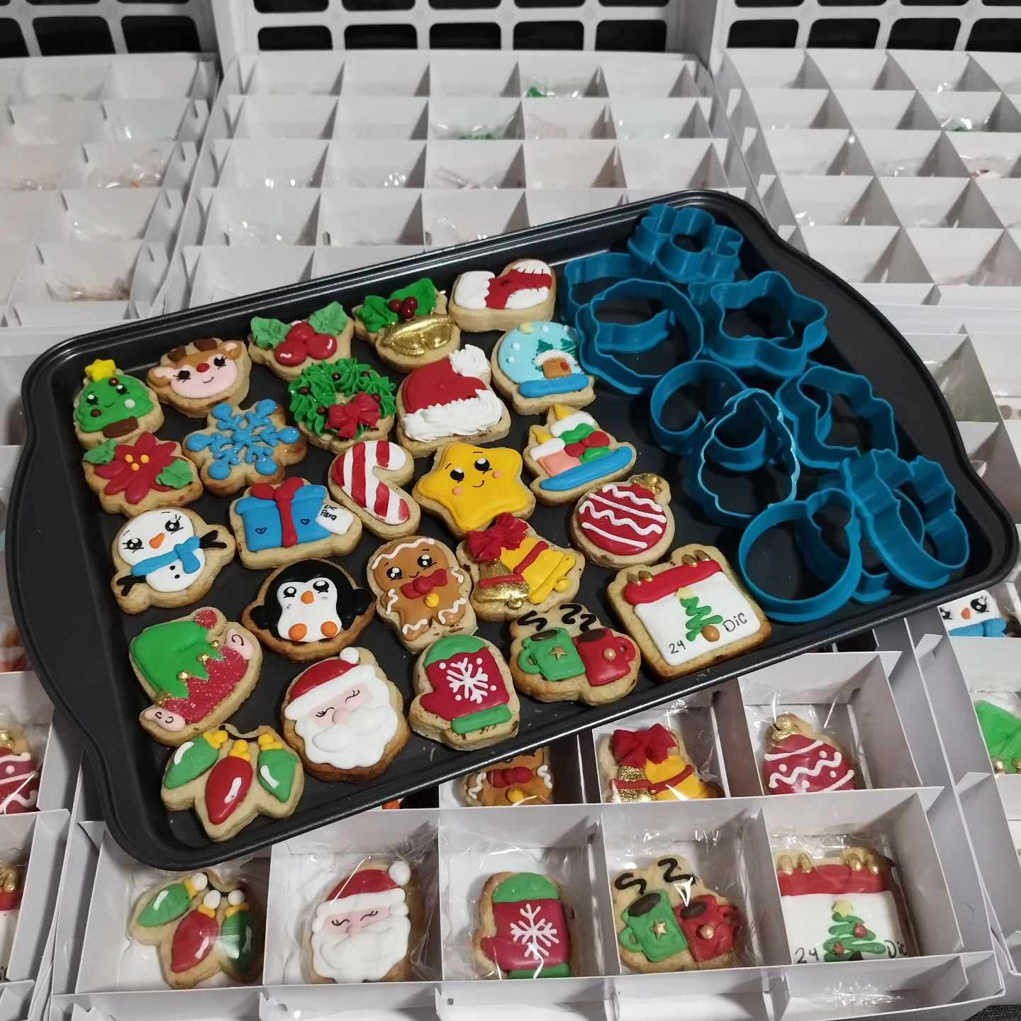 Set de 25 Cortadores de Galletas de diversas figuras navideñas. Elije el tamaño que desees. 5cm, 5.5cm, 6cm, 6.5cm, 7cm, 8cm, 9cm, 10cm, 11cm y 12cm. Incluye: