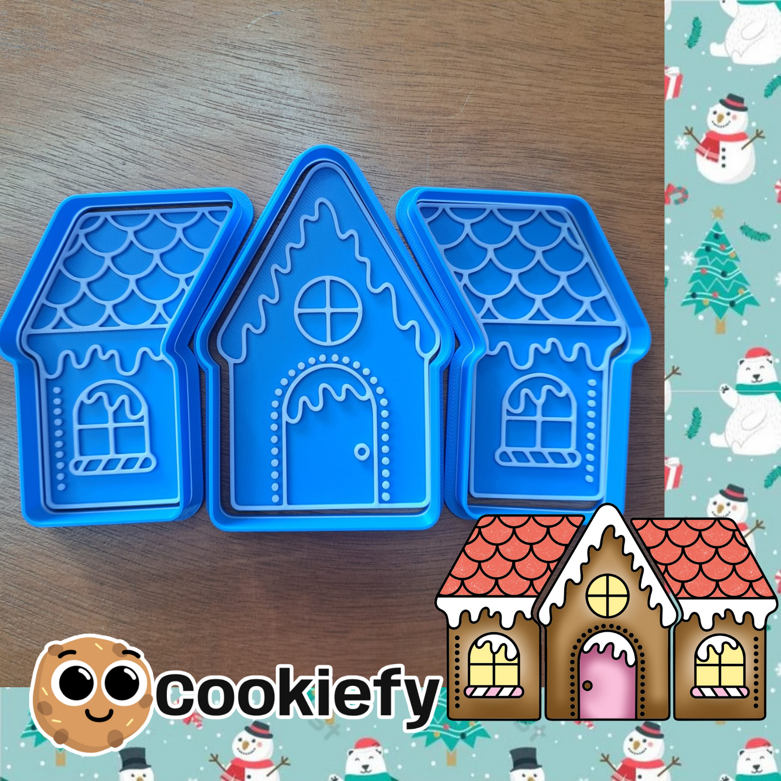Cortador y Marcador de Galletas de Casita de 3 Partes en Horizontal. Tamaño único