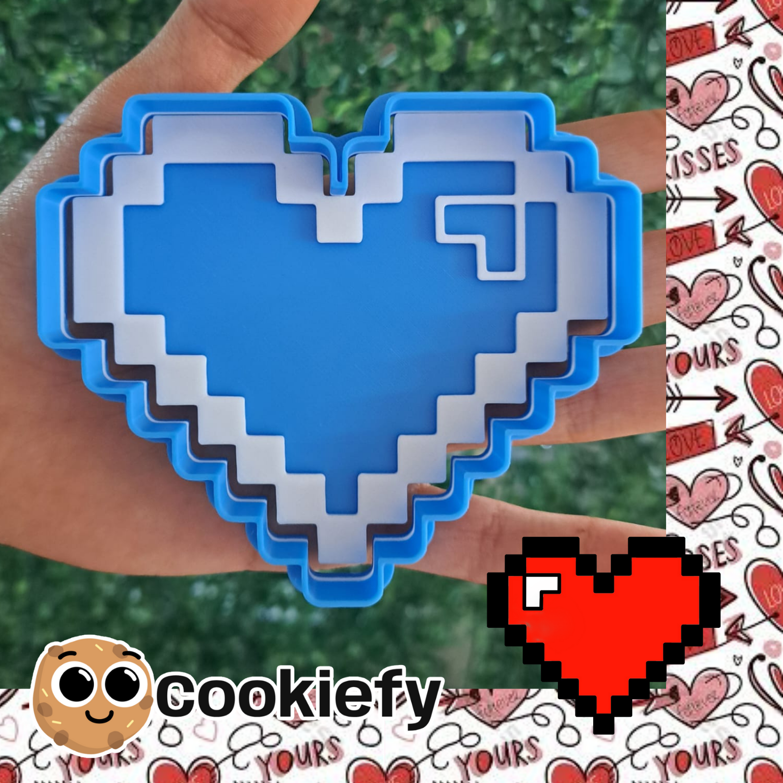 Cortador y Marcador de Galletas de Corazón Pixelado (Zelda). Elije el tamaño que desees. 5cm, 7cm, 10cm, 12cm.