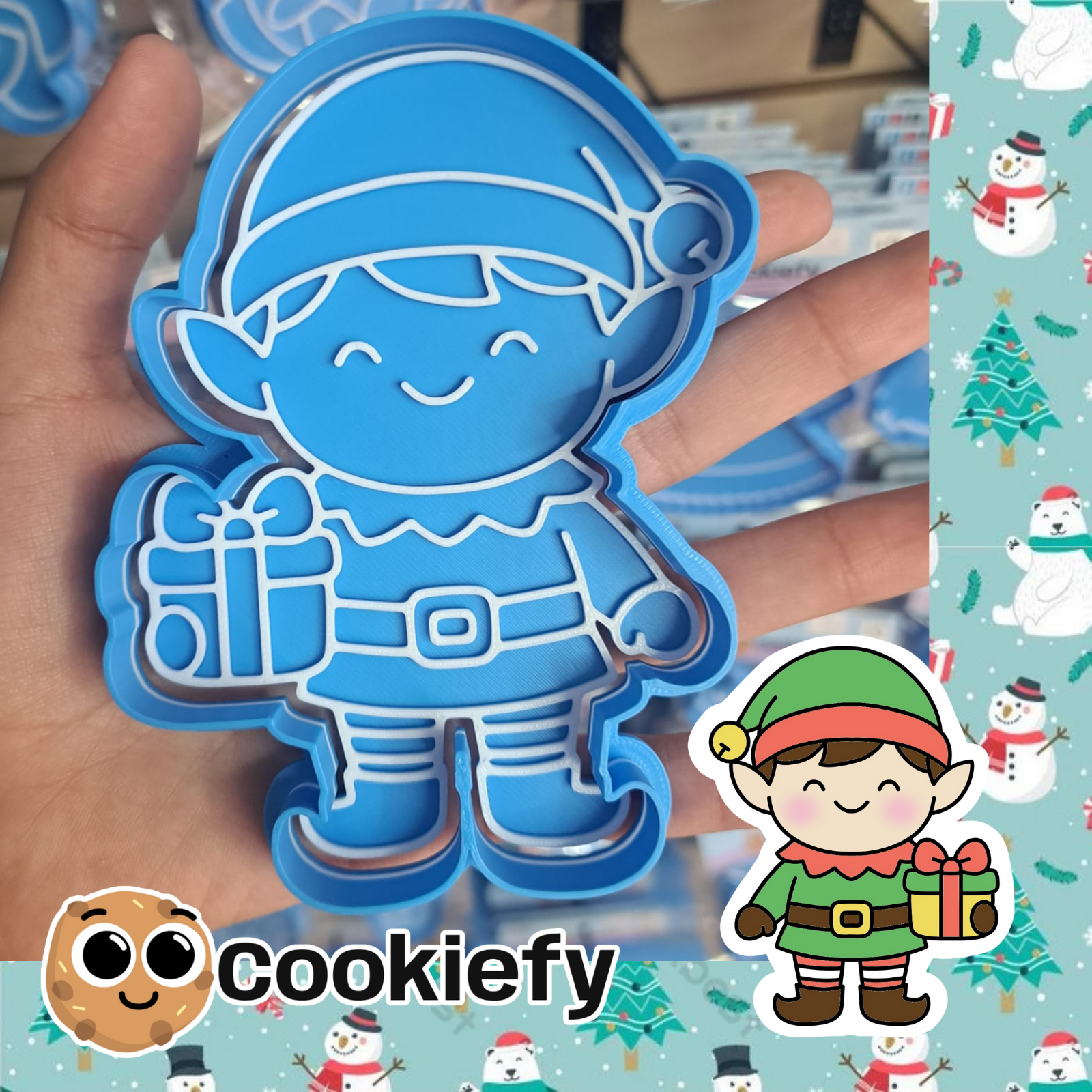 Cortador y Marcador de Galletas de Duende con Regalo. Elije el tamaño que desees, desde 5cm hasta 12cm.
