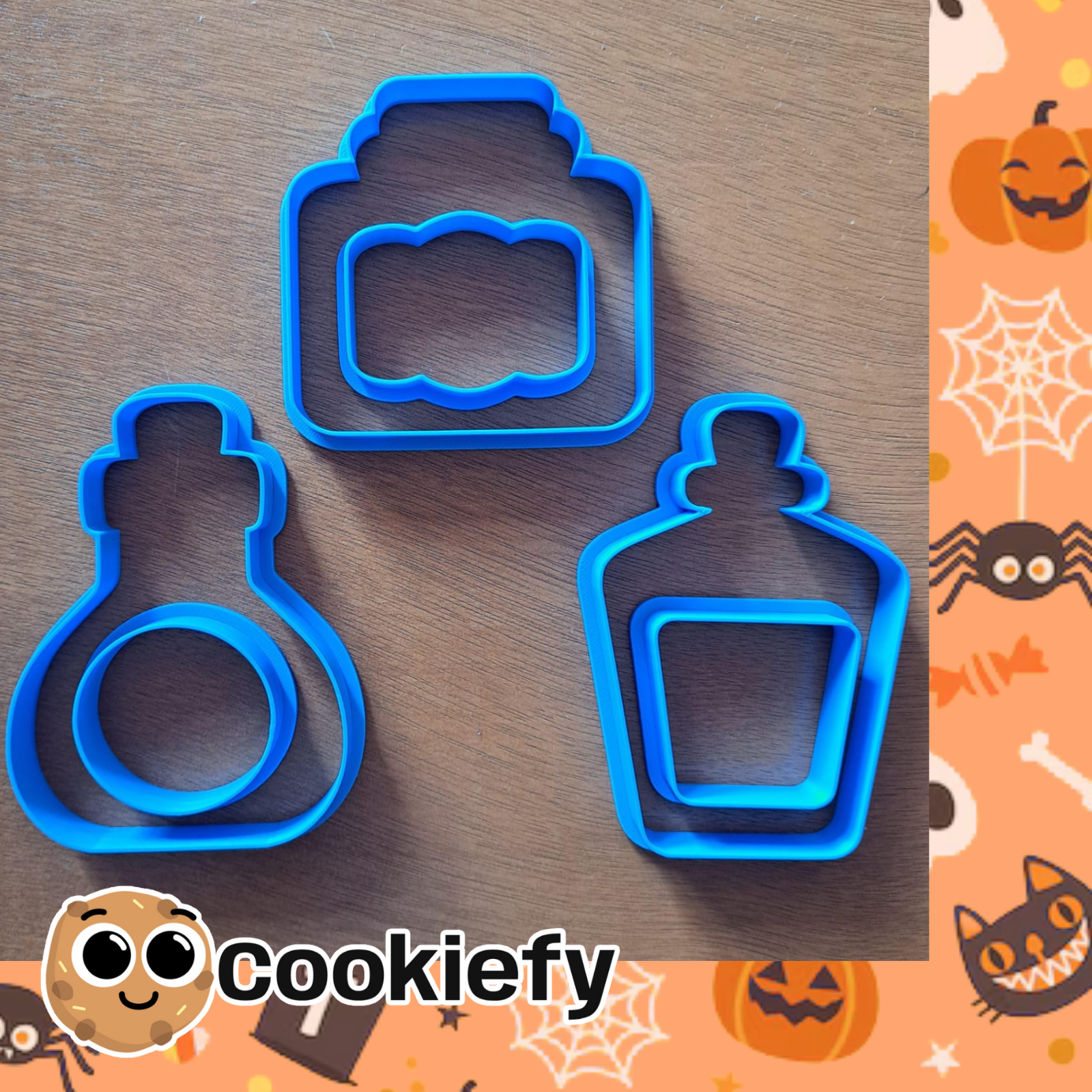 3 cortadores de galletas en forma de Pociones.