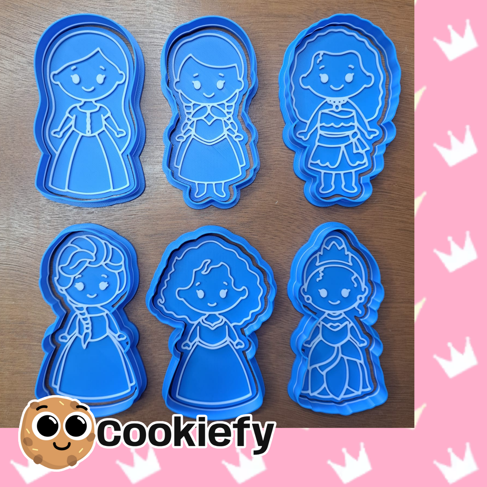 Cortador y Marcador de Galletas de Paquete de Princesas Modernas. Elije el tamaño que desees. 5cm a 12cm.