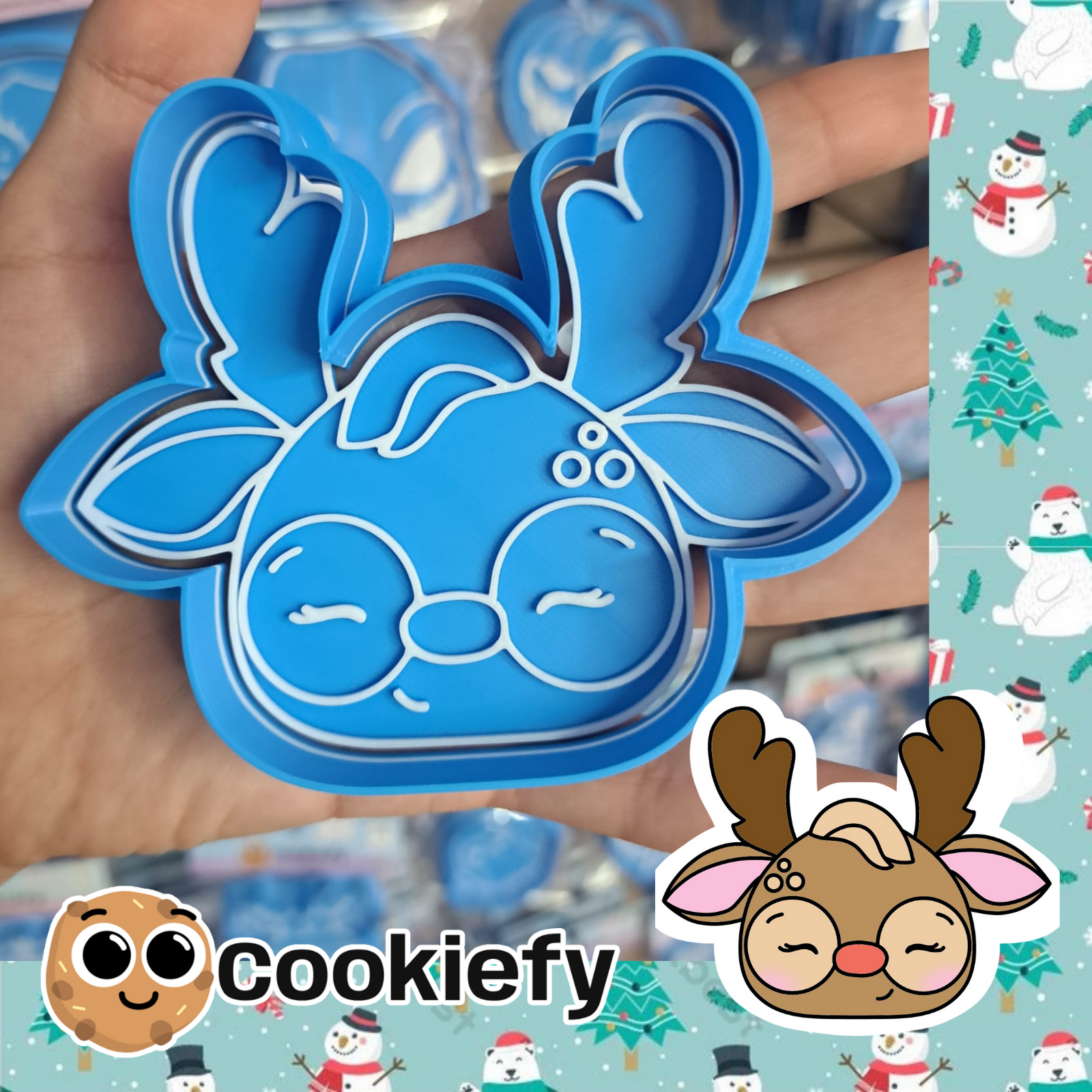 Cortador y Marcador de Galletas de Reno con Lentes. Elije el tamaño que desees, desde 5cm hasta 12cm.