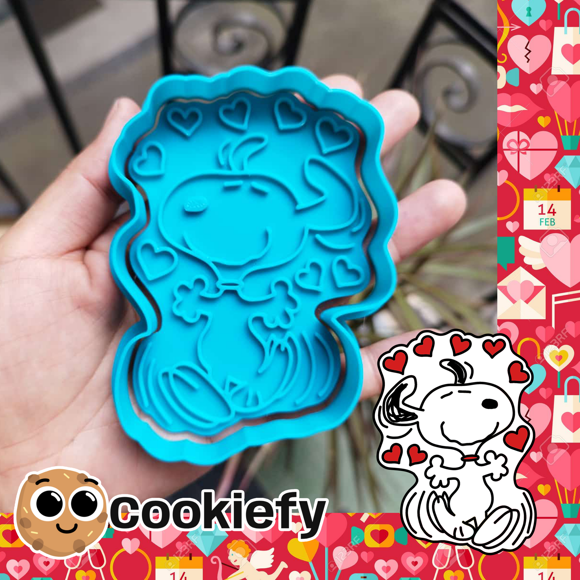 Cortador y Marcador de Galletas de Snoopy con Corazones. Elije el tamaño que desees. 5cm a 12cm.